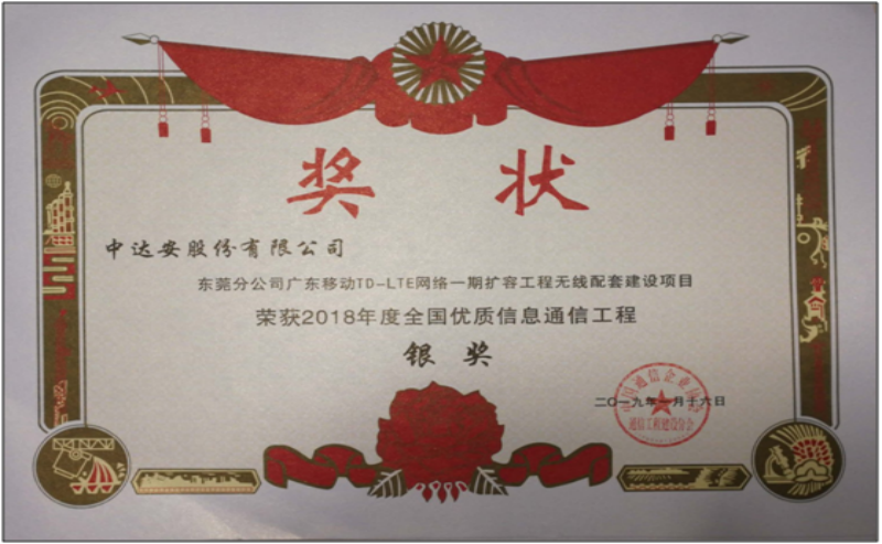 全國優(yōu)質(zhì)信息通信工程銀獎(jiǎng)-中國移動(dòng)4G網(wǎng)絡(luò)三期山東無線網(wǎng)絡(luò)主設(shè)備工程