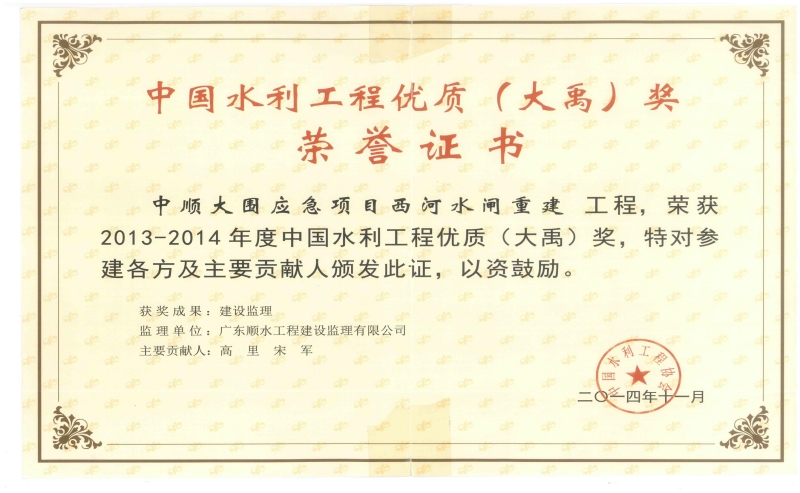 中國水利工程優(yōu)質(zhì)(大禹)獎(jiǎng)-中順大圍應(yīng)急項(xiàng)目西河水閘重建