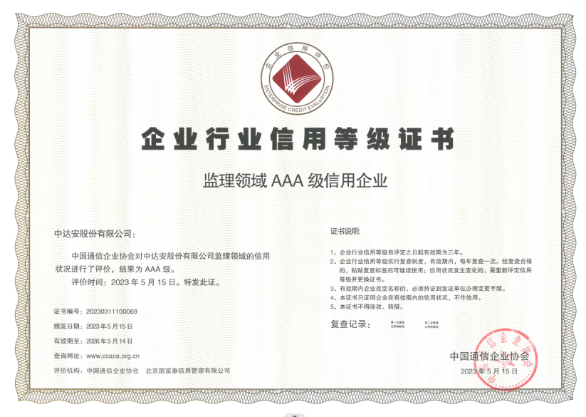中國通信企業(yè)協(xié)會監(jiān)理領(lǐng)域AAA級信用企業(yè)